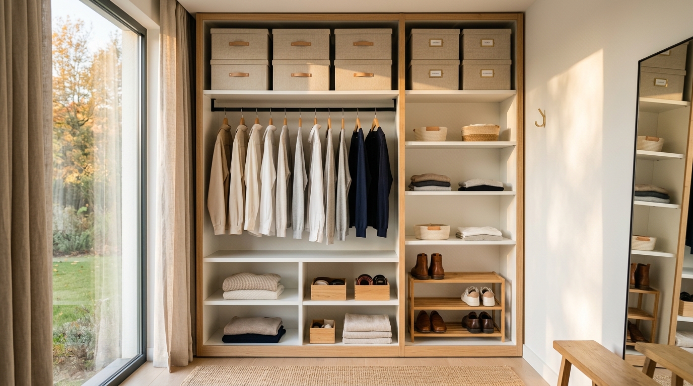 Aprenda a técnica definitiva de organização de inverno. Use sacos a vácuo e dobras inteligentes para guardar casacos pesados sem ocupar todo o seu armário.