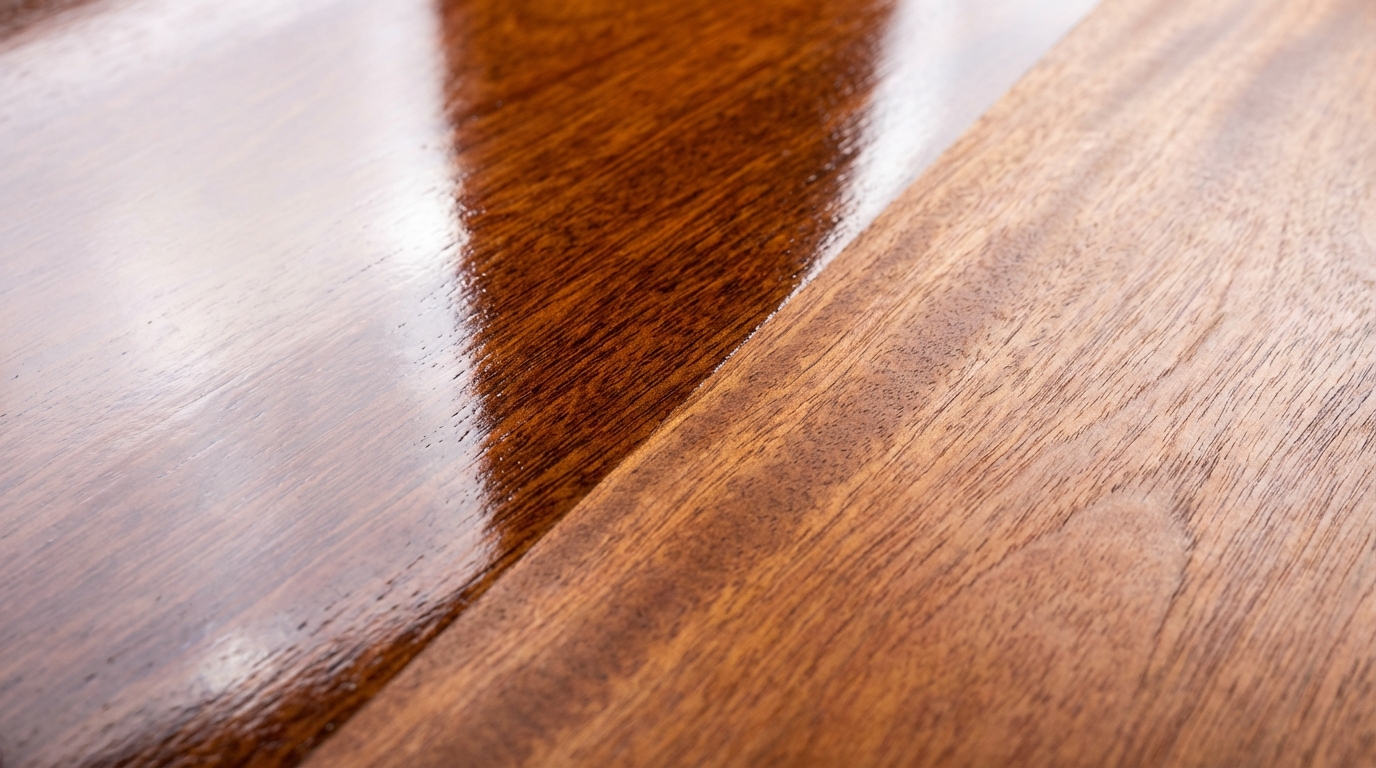 A maioria ignora o fato de que os vernizes modernos, especialmente os de poliuretano, funcionam como um exoesqueleto sintético. Eles são projetados para suportar a abrasão mecânica e o contato direto com substâncias químicas solventes, como álcool ou produtos de limpeza domésticos.