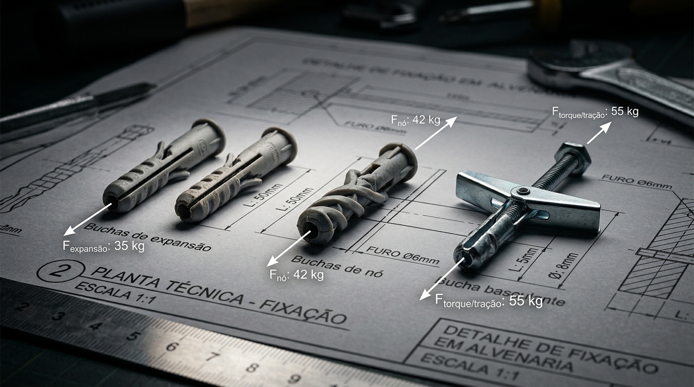 Aprenda a técnica definitiva para escolher buchas de parede para tijolo baiano e drywall. Evite prateleiras soltas com este guia técnico e aprofundado.