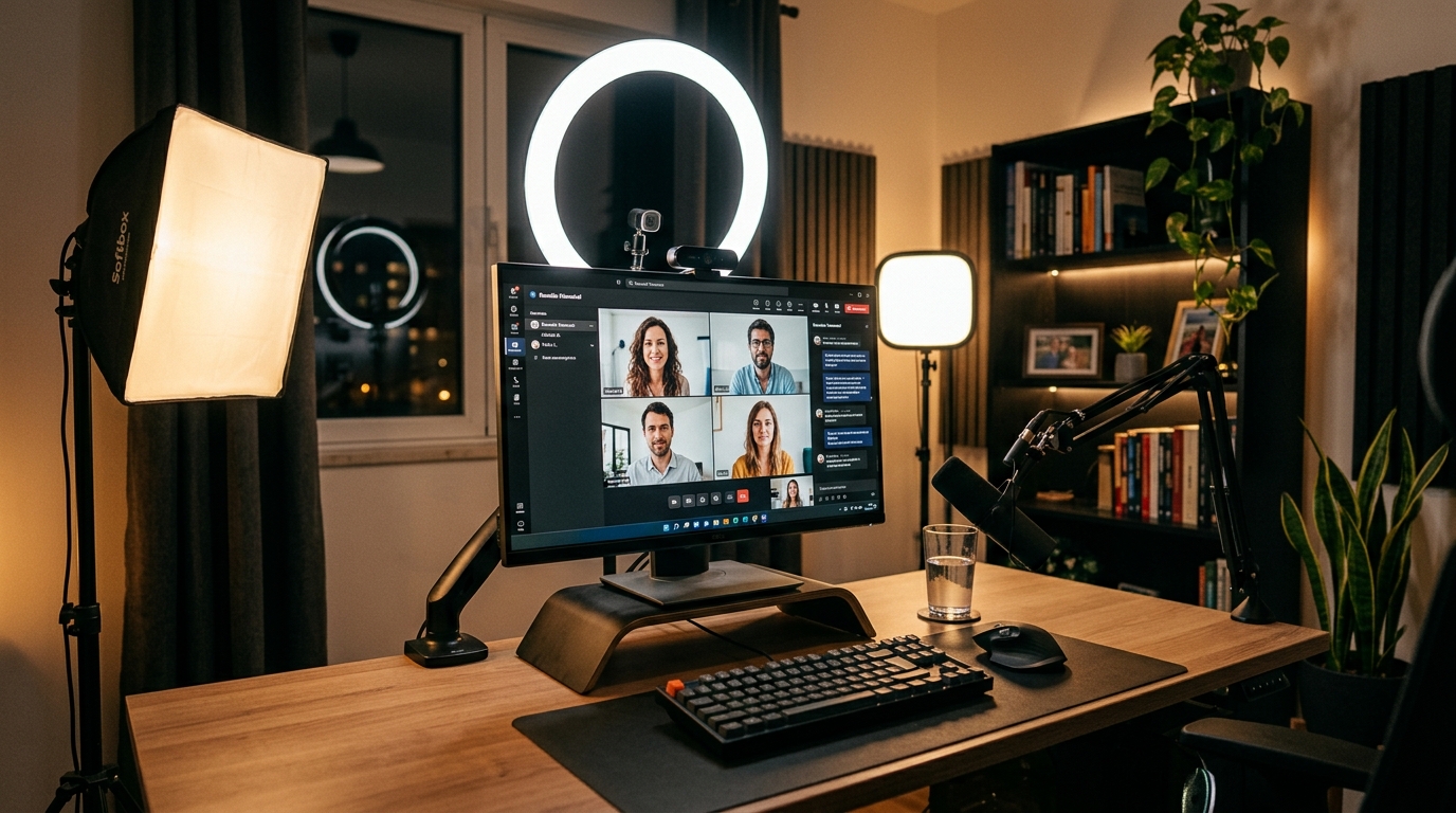 Aprenda como dominar a iluminação para videochamadas. Use luz natural, ring lights e temperatura de cor para elevar seu nível profissional no Zoom e Google Meet.