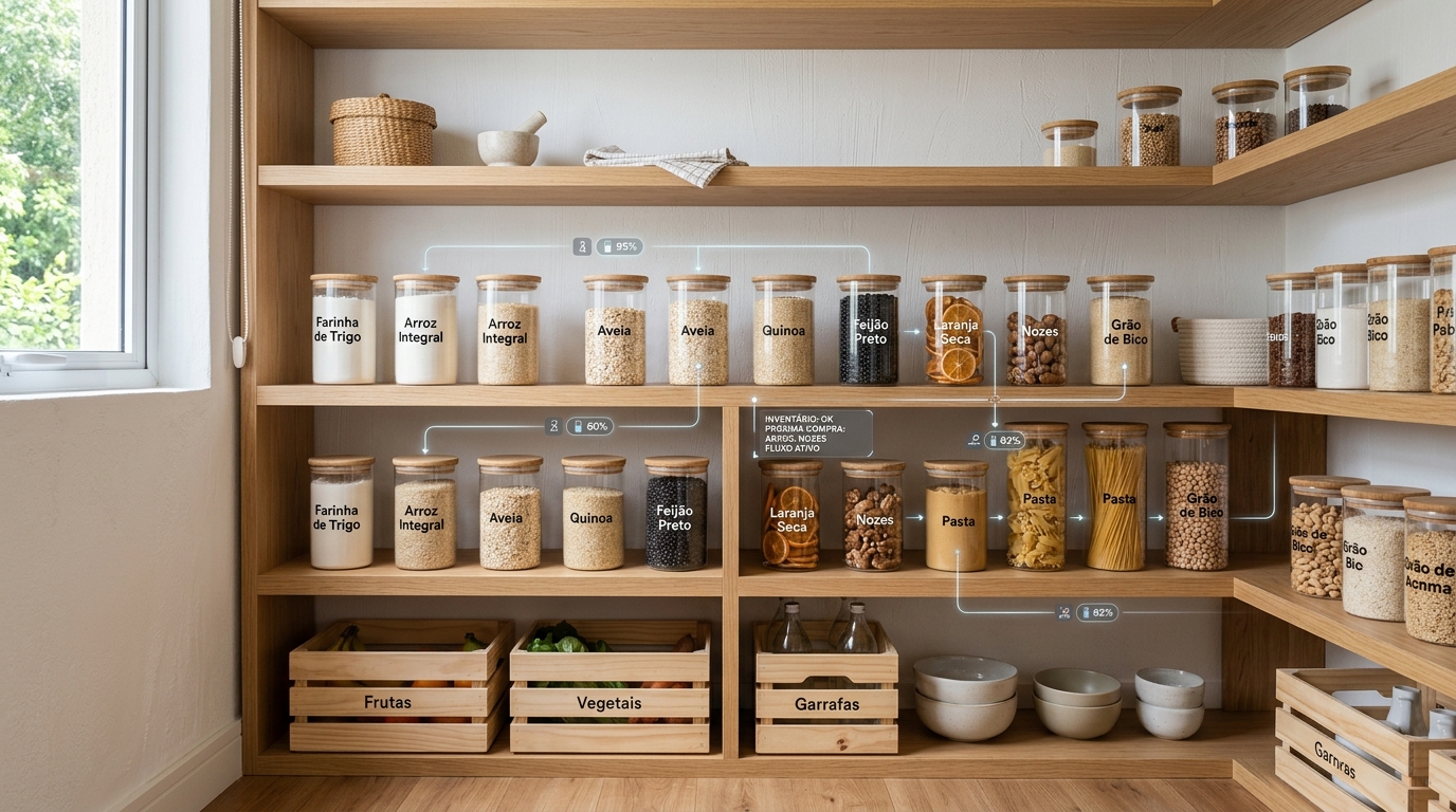 Aprenda a dominar seu inventário de despensa com o método de Clara. Evite compras duplicadas, organize sua casa e ganhe soberania sobre seu tempo e dinheiro.
